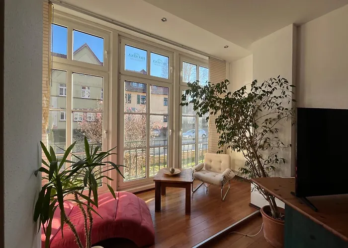 Ferienwohnung Am Stadtpark Erfurt ferielejlighed giver direkte adgang til Willy-Brandt-Platz og har udsigt over gaden. Denne ferielejlighed ligger 600 meter væk fra Burenhaus og lige i nærheden af Stadt Park.